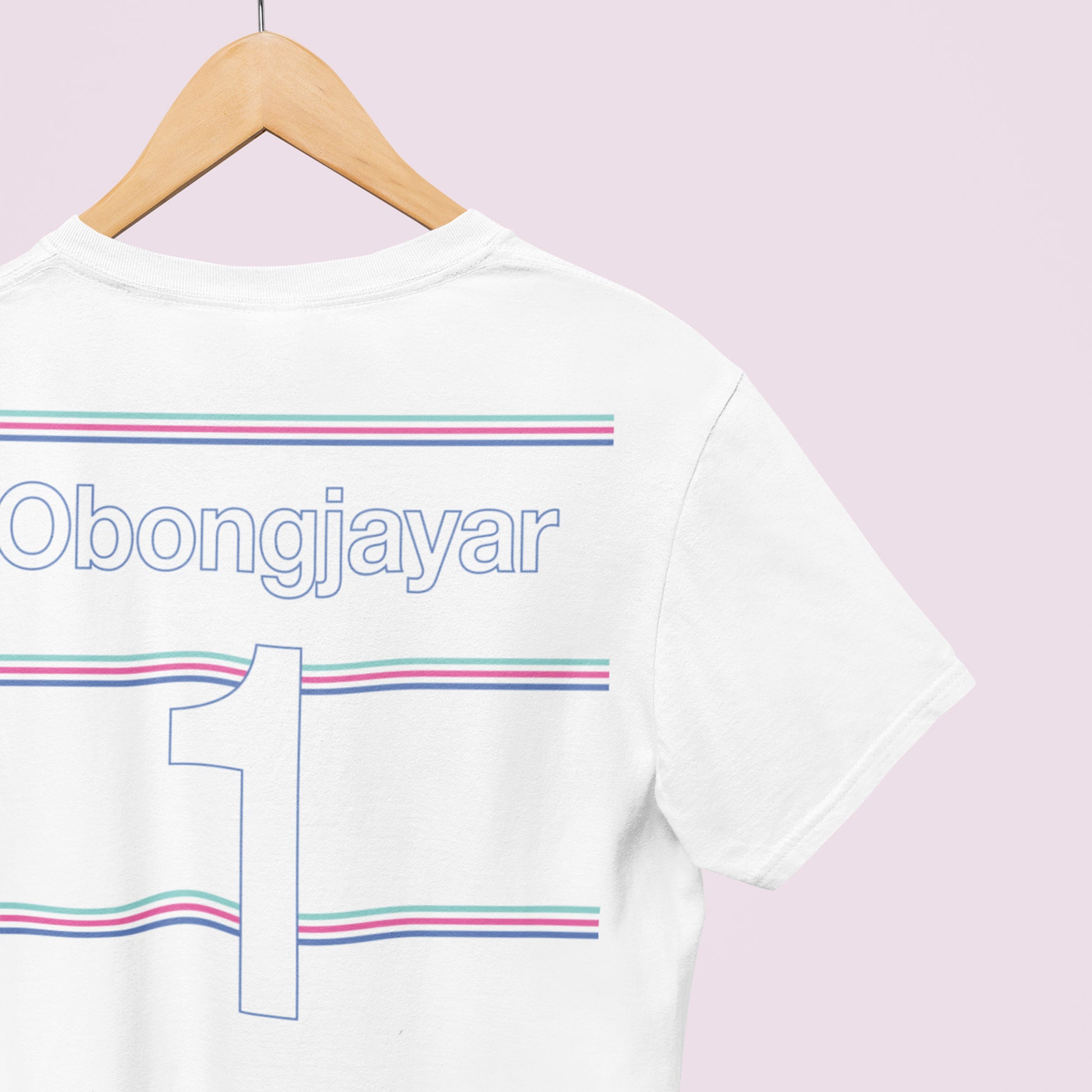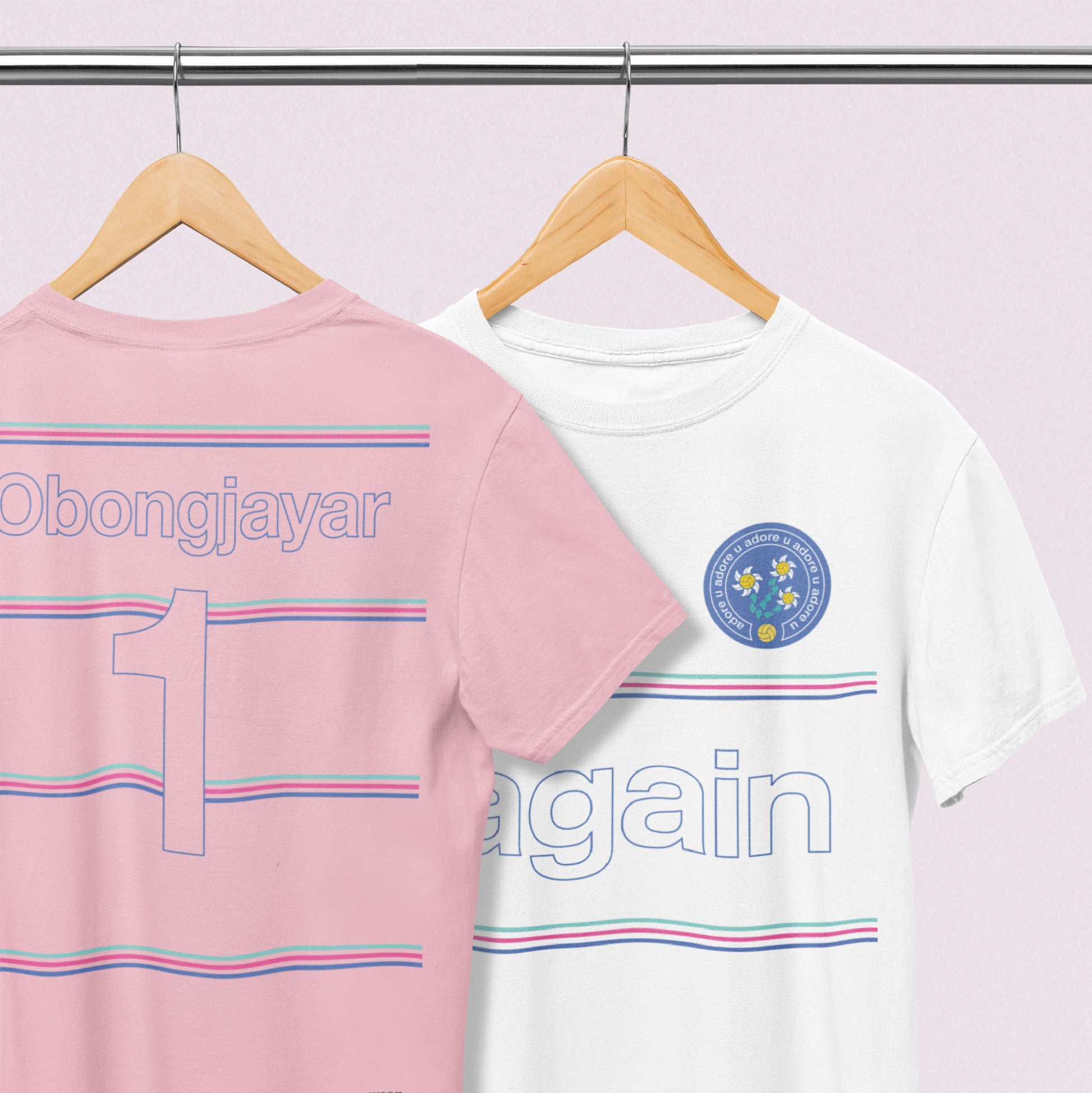 Obongjayar joins the Fred Again team, wearing the number 1 shirt. From our Fred Again Glasto inspired t-shirt range. Celebrating the number 1 song ‘adore u’.